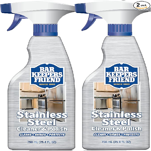 Bar Keepers Friend Stainless Steel Cleaner and Polish Spray (2 x 25.4 oz) Removes Oily Fingerprints, Hard Water Stains, Grime & Food Debris without Scratching or Dulling Appliances & Surfaces